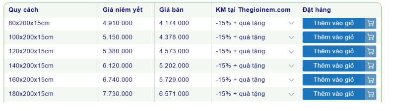 Nệm Vạn Thành 15cm giá bao nhiêu?